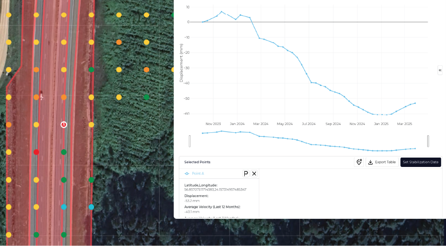 Monitor landslides, soil subsidence, and slope instability with satellite-powered analytics that reduce failures, prevent disruptions, and cut emergency costs