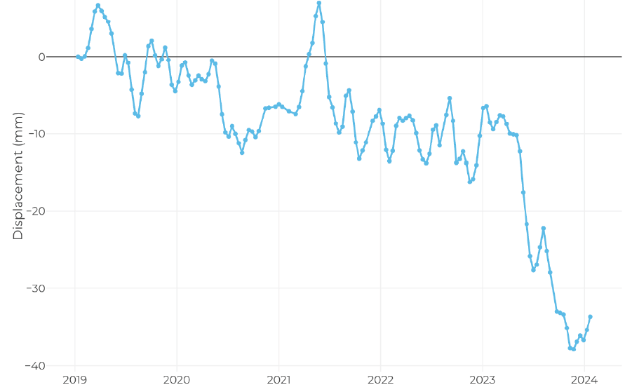 Monitors cumulative displacement and average velocities over time, helping detect displacement and instability with precision Historical Data