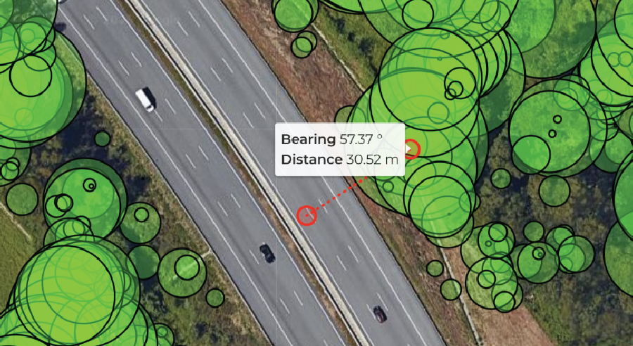 Measure vegetation encroachment dangerously close to any asset, including powerline conductors Tree Canopy Detection