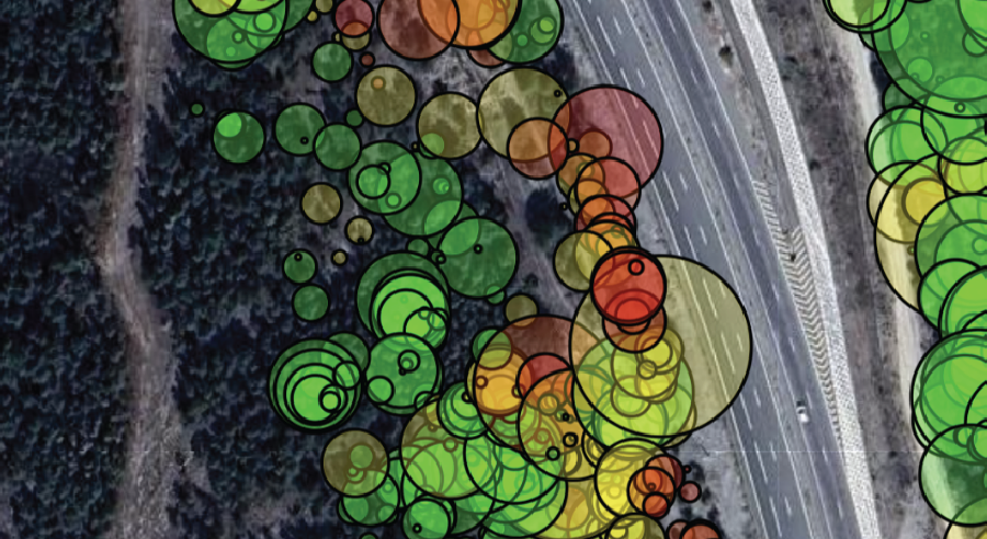 Identify trees that pose fall risks to infrastructure Treefall Impact Radius Analysis